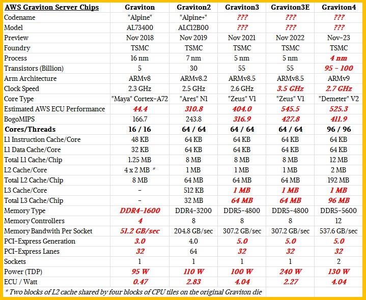 Here is how we think the Graviton4 stacks up to the prior generations of chips: