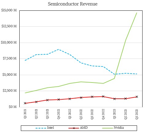 Revenue is one thing, but operating profit is a related and yet different thing. And it is different for each of these three chip makers: