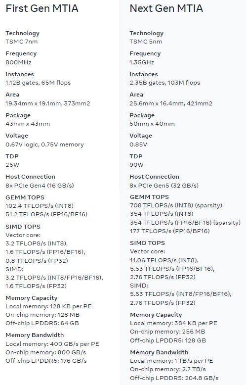 Meta has not provided details on the architectural changes it has made inside of the PEs, but it did provide plenty of comparative stats: