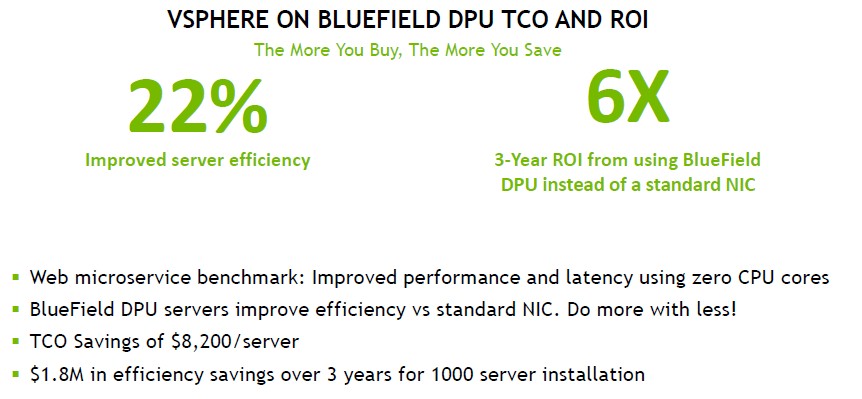 Deierling says that using the DPU offered a “near immediate payback” and made the choice of adding a DPU to systems “a no brainer.”