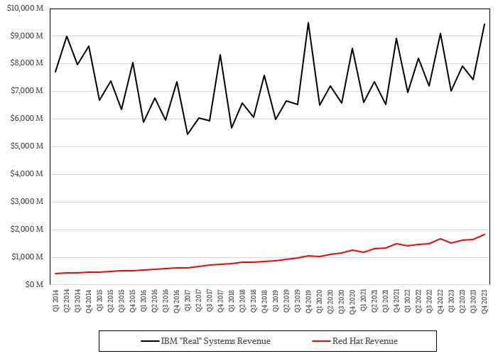 Well, no. If we had to guess, it would be somewhere around $200 million to $250 million in pre-tax income for the datacenter system part of the Red Hat stack in Q4. The Red Hat datacenter stack actually dilutes the profits of the IBM System Z stack a little if this is true, and that stands to reason given the relatively high price that IBM mainframe shops pay for their software.